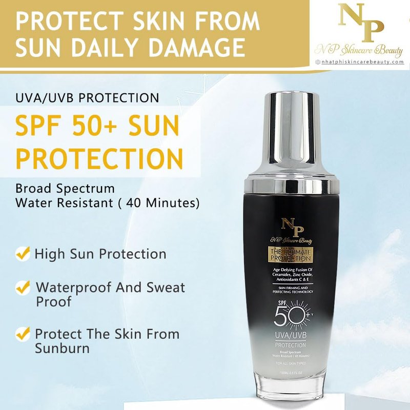 - Comprehensive Sun Protection: Enjoy full spectrum UVA and UVB coverage with SPF50+, shielding your skin from harmful rays, preventing photo-ageing, and defending against environmental damage.