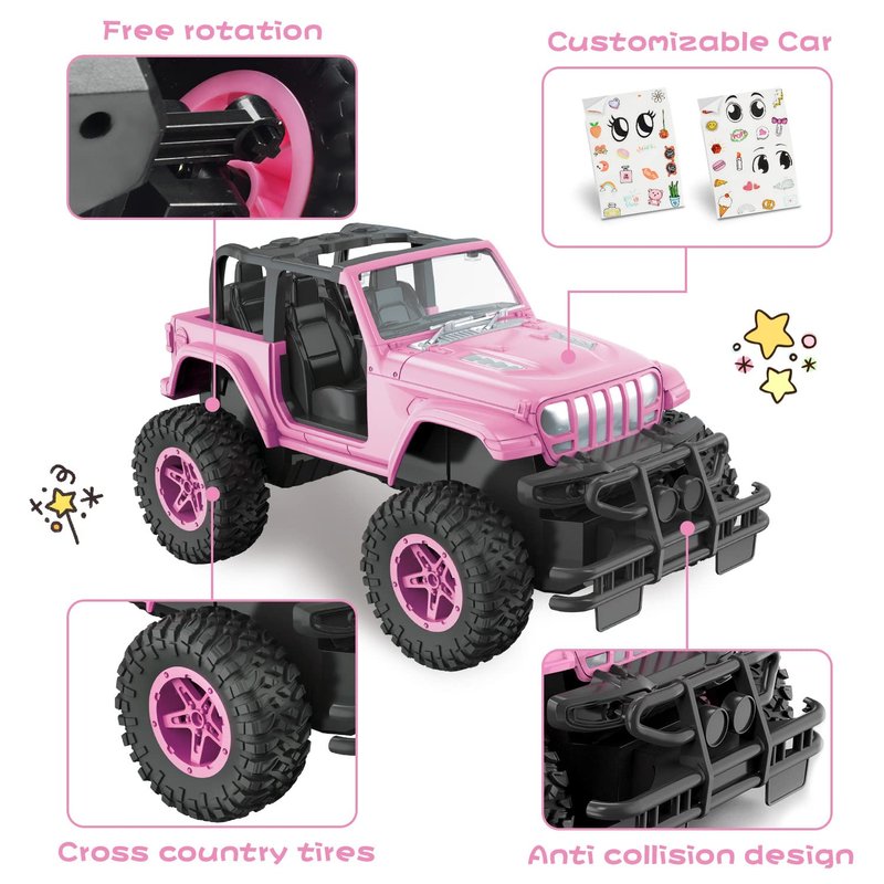 NQD Pink RC Cars 1:16 Scale with DIY Sticker, Remote Control Car for Girls, 80 Min Play 2.4Ghz Jeep RC Trucks,Little Girl Toys Gifts for 4-5 6-7 8-10 Years Old