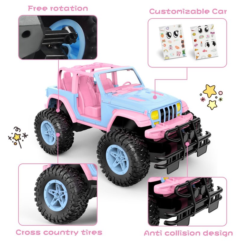 - NQD New Exterior Design: A brand new innovative exterior pink shell design, attractive lovely body with remarkable rc car appearance brings unparalleled visual experience for your girls kids. Delicate sticker was prepared for you to DIY your exclusive rc car.
