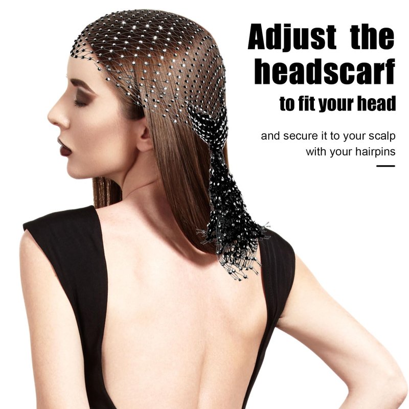- Brilliant Design: This rhinestone headscarf is made of mesh and rhinestones to create a beautiful and eye-catching look. The sparkling head scarf will make you be charming and eye-catching in precious moments.
