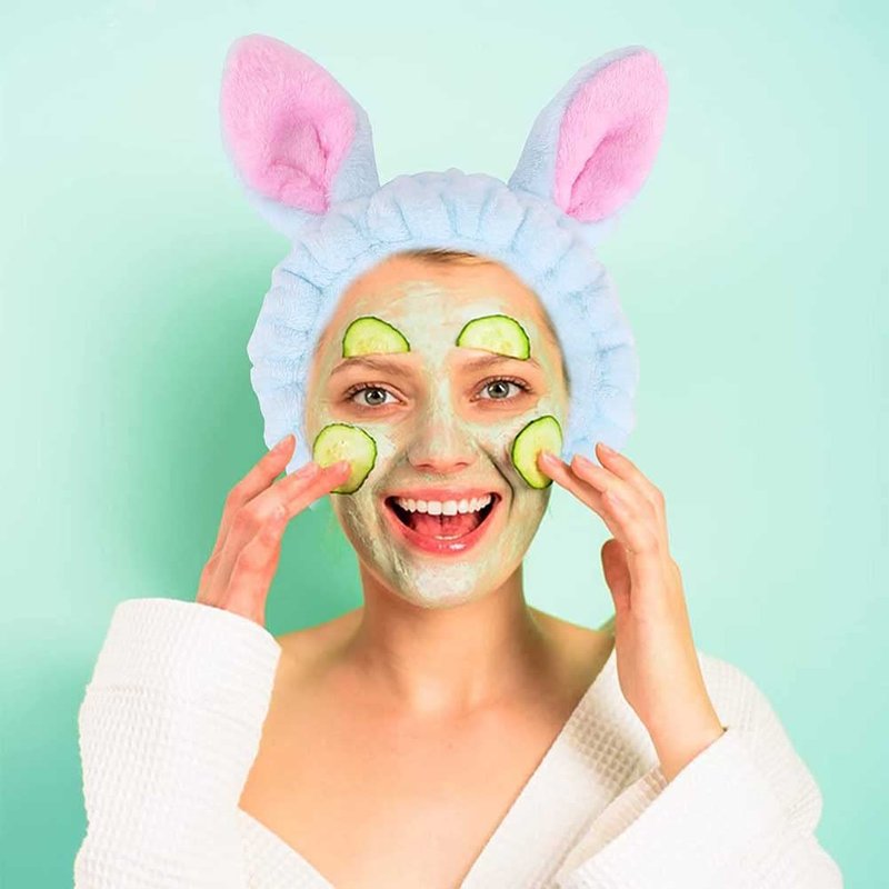 NT-ling 2 PACK Wash Headband, Bunny SPA Skin Care Hairlace, Soft Facial Headband Head Wrap,Rabbit Ear Makeup Washing Face Shower Bath Bands Hair Accessories,Easter Cosplay Costume (Blue+Pink)