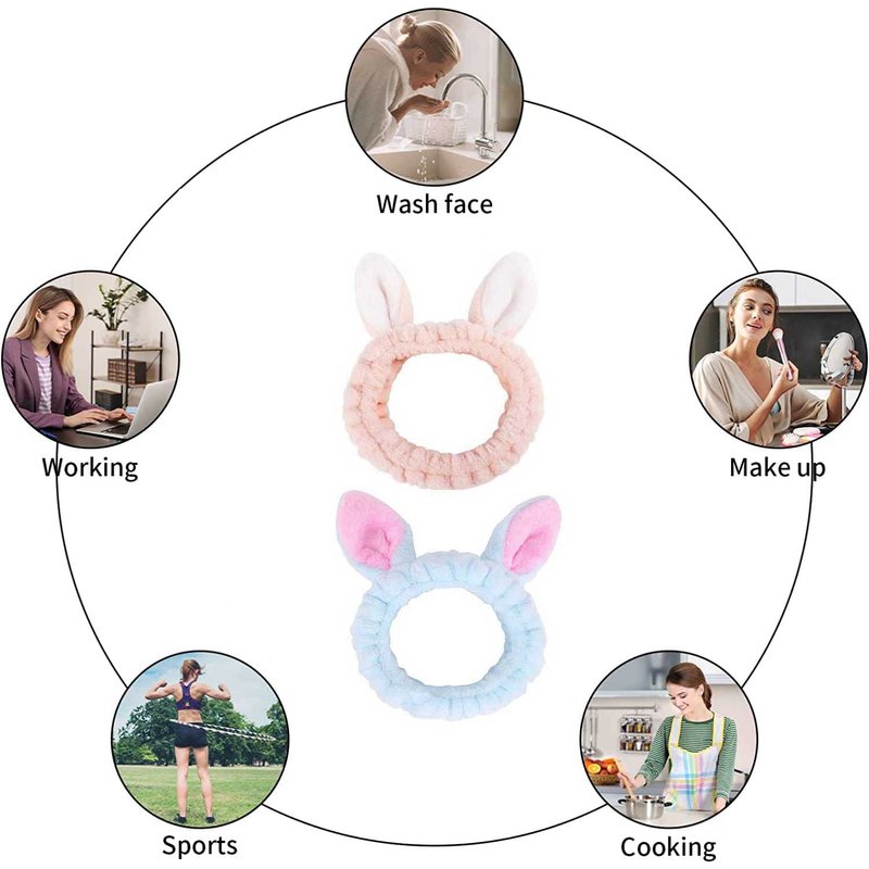 - Cute look: Made of soft coral fleece.Comfortable, easy to wear, keep your hair on and friendly to the skin.The headband has a cute rabbit ear at the top, Bright colors make them look more cute and sweet.