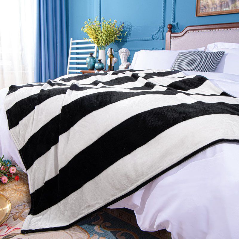 - PRODUCT FEATURES: This blanket is single layered design which is lightweight and not so thick. Classic black and white stripe pattern shows a modern simplism style. There are 4 different specification to meet the needs of different persons. This blanket is wrinkle, fade and pilling resistant, and is suitable for all seasons.