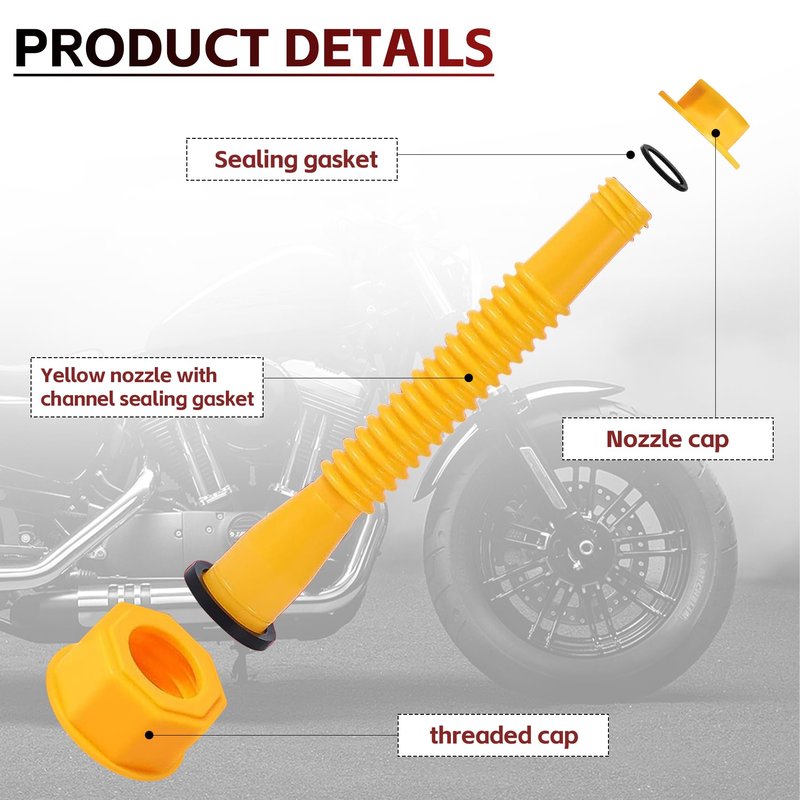 - HIGH QUALITY MATERIALS--These gas can spout are made of HDPE plastic, which are bendable and durable. Thicker and widened rubber gaskets, can better fit the gasoline container, longer service life, Safe without leakage. In use you can bend freely without breaking.