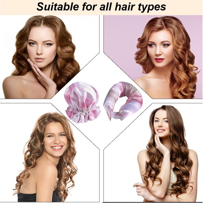 - Upgrade Heatless Curls: Upgraded heatless hair curler and cap is made of silky new satin material outside and soft material inside, won't pull hair while curling, can be reusable, easy to create natural curls. Easy to use at home,the heatless curls is lightweight and carry on when you trip.