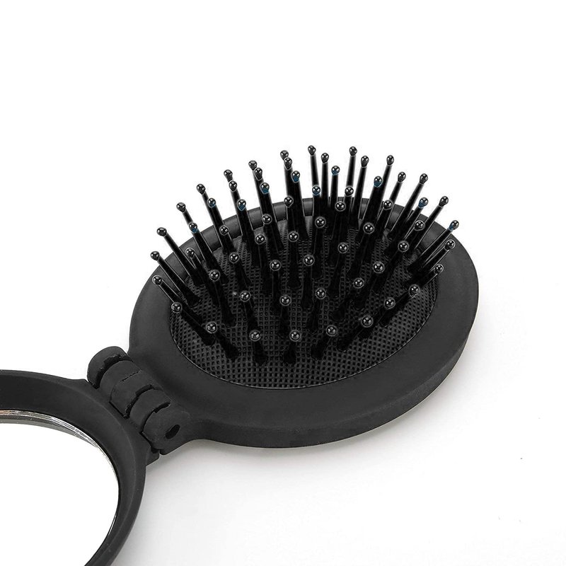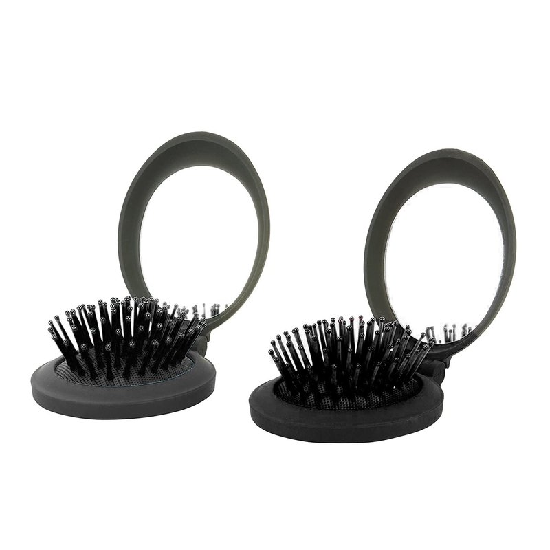 NuAngela Mini Hairbrush, Folding Hair Brush With Mirror Set, Compact Pocket Size, Travel Pop Up Hair Comb, Easy Keep in Purse, Gym Car Bag (2Black)