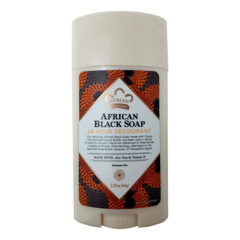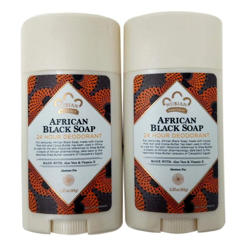 Nubian Heritage 24 Hour All Natural Deodorant African Black Soap With African Black Soap Extract, Shea Butter, Grapefruit Seed Extract, Vitamin E and Sandalwood Oil, 2.25 oz (64 g) each