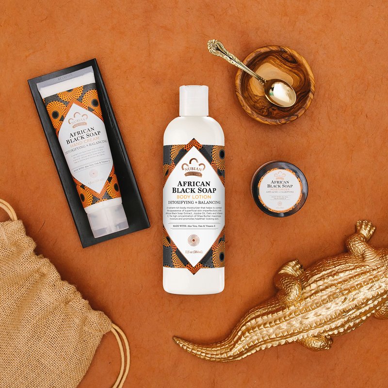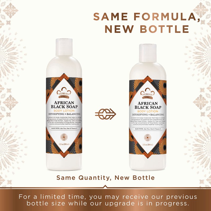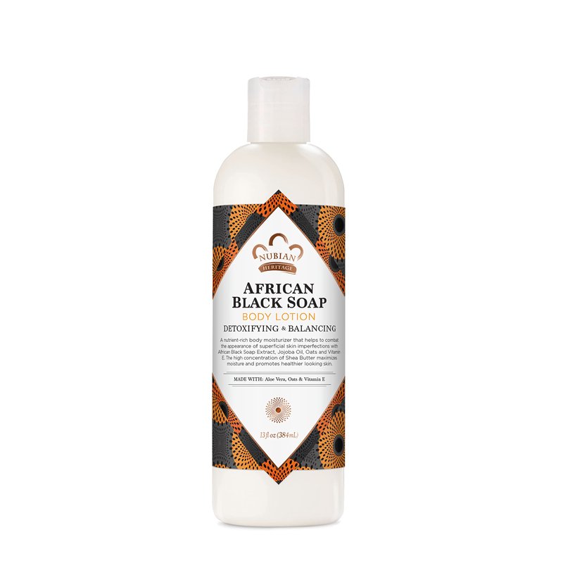 - African Black Soap Body Lotion from Nubian Heritage banishes dull, dry skin with hard-working, skin-loving ingredients that leave behind radiant skin and glowing skin