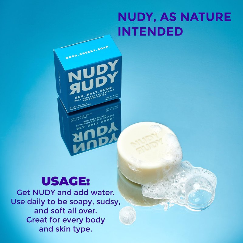 NUDY RUDY was born out of a feeling and desire for the purest form of simplicity: being bold, happy, label-free individuals, or in other words, being NUDY. NUDY RUDY is an expression of freedom and attitude with the aim of bringing body care to every body, giving you a range of personal care products that celebrate your differences, with a little cheeky humor thrown in. Made in Australia using ingredients that are good for your body. Our scents are specially formulated without using harsh ingredients, and we use traditional body care-making methods to make sure you'll always want us close to you, but not in a creepy way. Our secret to ensuring a beautiful, velvety texture with long-lasting smooth and silky touch is organic shea butter. Our generous amounts of shea butter in every NUDY RUDY soap bar ensure long-lasting use and a beautiful texture and feel against the skin. Great holiday gift idea for friends, significant others, parents, teens, and sibs. With a range of body care products including bar soaps, liquid hand washes, body washes, and hand creams, all featuring unique and irresistible scents, what are you waiting for?