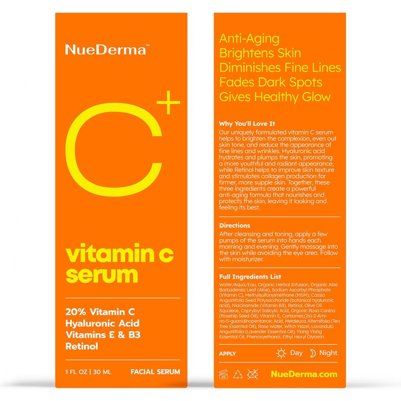 - Anti Aging Face Serum - NueDerma Vitamin C Serum for Face, Anti Aging Serum with 20% Vitamin C , Vitamin E, Vitamin B3, Hyaluronic Acid, Retinol, & Organic Aloe Vera, Hydrating & Brightening Serum for Fine Lines and Wrinkles