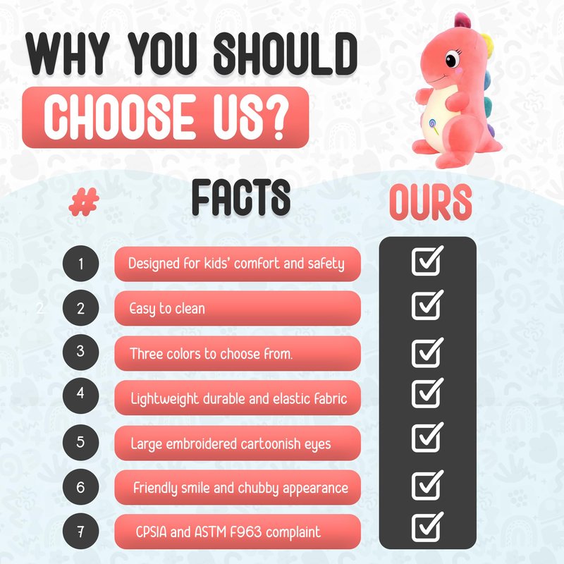 - EMOTIONAL REGULATION - Children can use this dinosaur plush as a tool to calm down when they are upset or anxious. Holding and hugging our soft and cozy plushy dino can have a soothing effect and help them to feel more secure and safe.