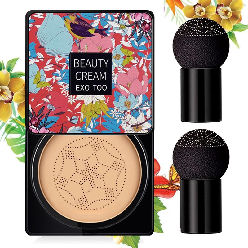 NUIBO Mushroom Head Air Cushion CC Cream, Beauty Cream Exo Too BB Cream, Full Coverage Liquid Concealer Makeup Foundation with Two Mushroom Head Sponges