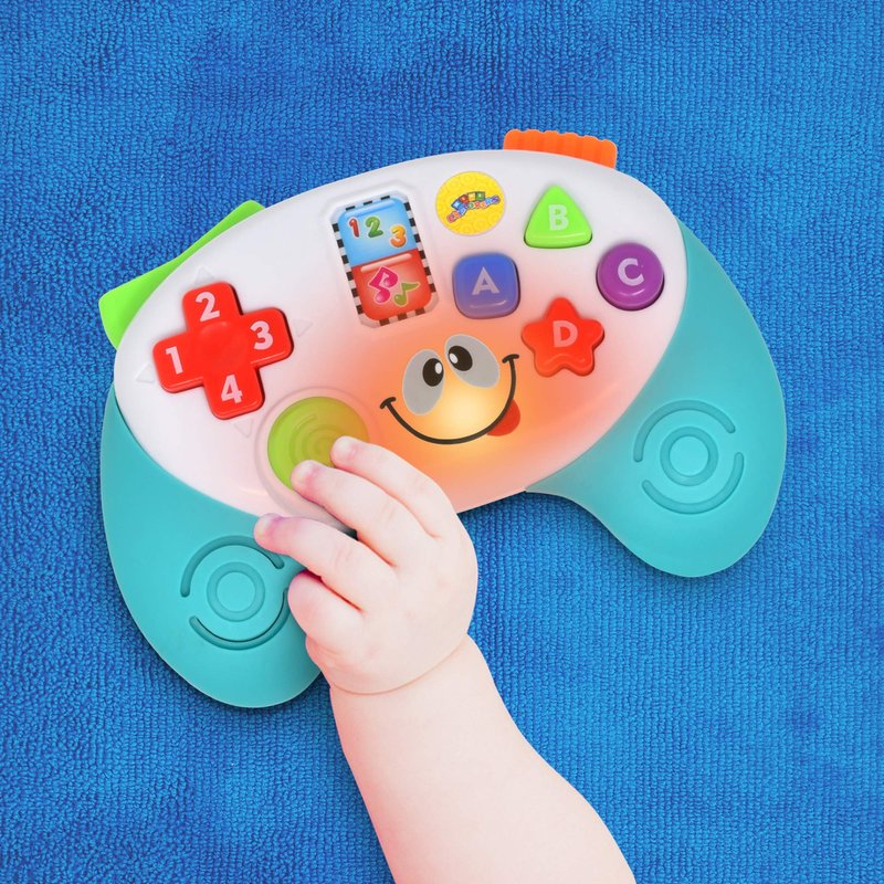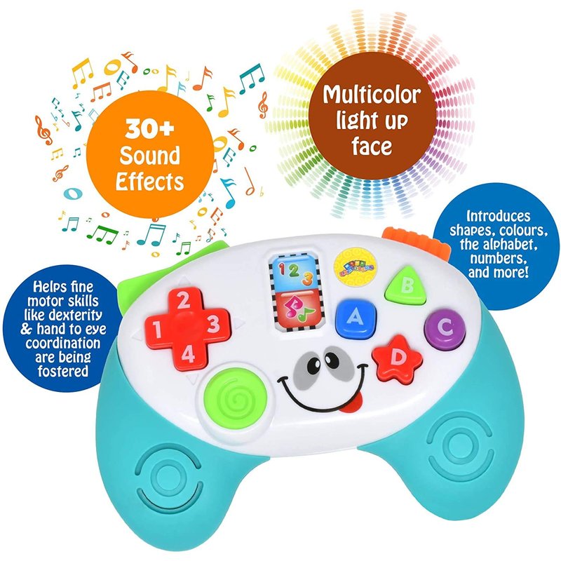 Baby Remote Toy Game ControllerKeep your child busy with this baby remote Game Controller, and you will have no distractions while you play your video game!Little LearnersAs little players move and press the buttons, They will hear exciting songs, sounds and phrases that will introduce them to numbers, shapes, colors and more!