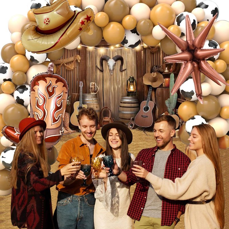 - 【40 Inch Number Balloons】Our balloon kit contains: 1PCS 40inch foil brown number balloon, 1PCS 22inch foil exploding star balloons, 1PCS Cowboy hat foil balloons(18.89x24.4in), 1PCS Cowboy boots foil balloons(17.71x22.83inb), 6Pcs 12inch latex brown balloons, 6Pcs 12inch latex skin color balloons, 4Pcs 12inch latex Cow pattern balloons.