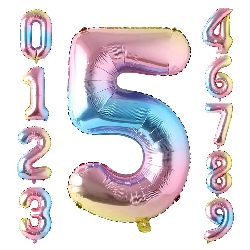 - 【🎈PERFECT PHOTO PROP🎈】Rainbow party balloons offer a wide selection of numbers and colors to suit your different themes and celebration needs. From childish rainbow colors to classic gold tones, you are free to choose.40 inch large size with attractive colors add color and fun to your party. colorful number balloon rainbow colored balloons tie dye decorations rainbow balloons number 5 girl number balloon fairy party decorations frozen birthday party decorations
