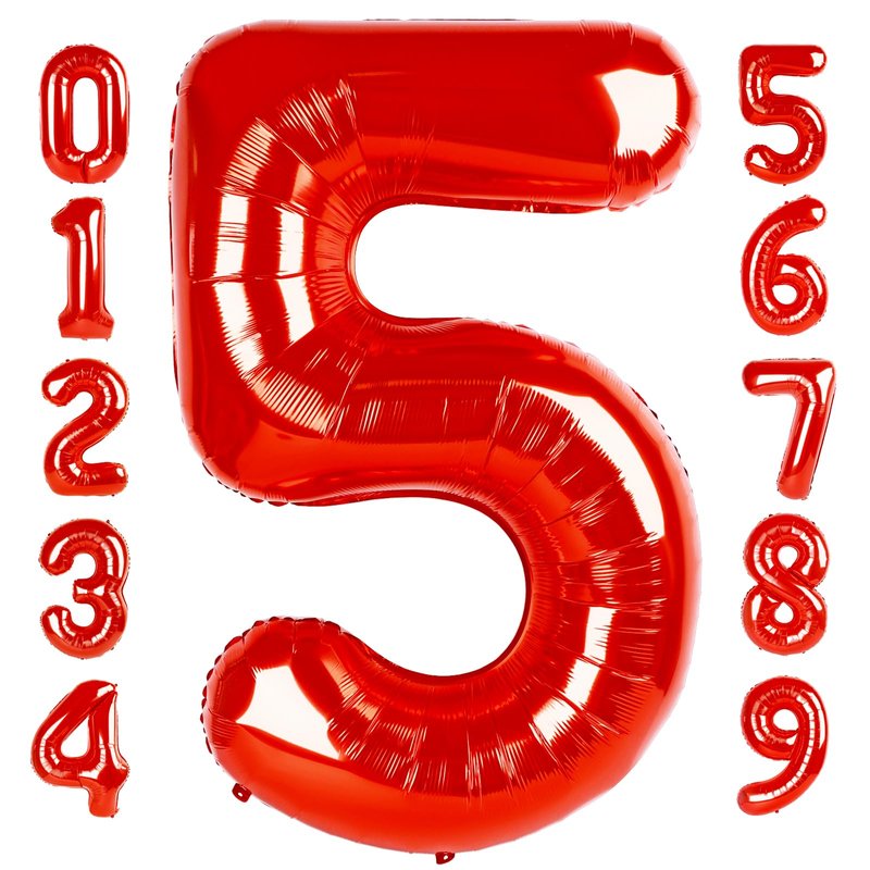 Number 5 Balloon Red 40 Inch, 5 Year Old Girl Boy Birthday Gift, 5 15 25 35 45 50th 55 Birthday Anniversary 2025 Party Decorations, 5 Foil Balloon for Miles Morales Birthday Party Decorations