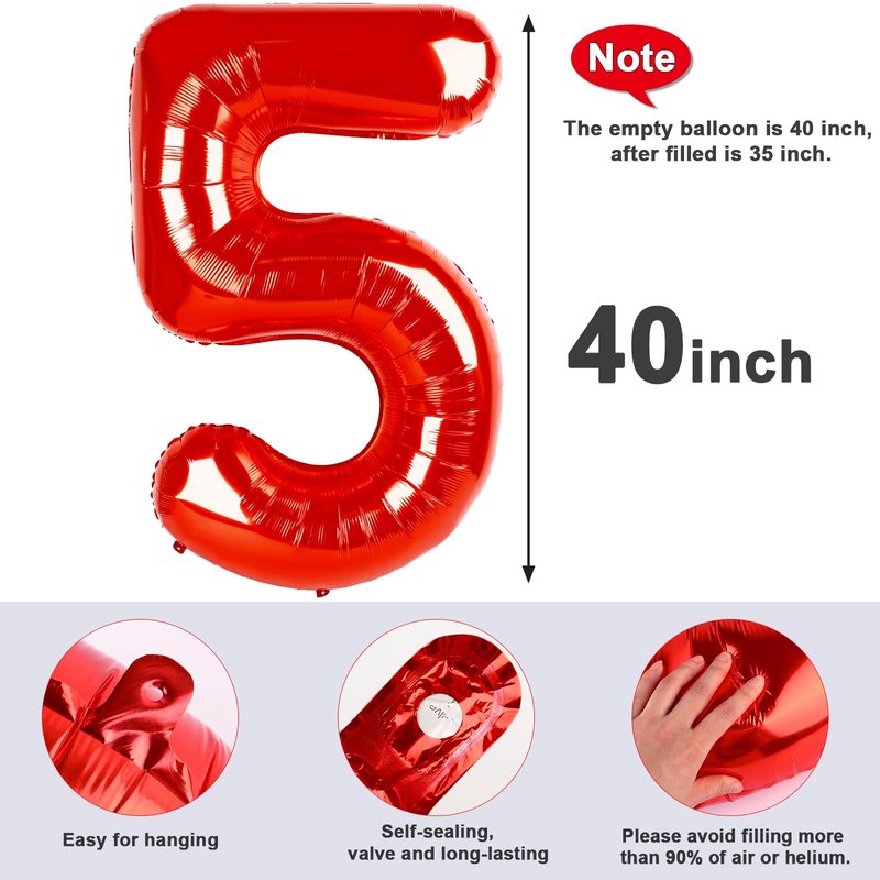 - 【HUGE NUMBER BALLOONS】 You will receive 40 inch red number balloons, also the package come with a straw for easily inflate and deflate. The jumbo number decoration are prefect for birthday party or anniversary events decorations, which will make the celebration vivid and amazing. We can provide ten numbers from 0 to 9 and select the number balloon you want. Enjoy the DIY time to create your unique party!