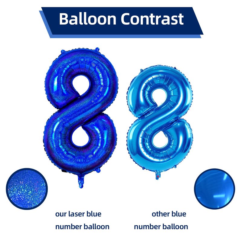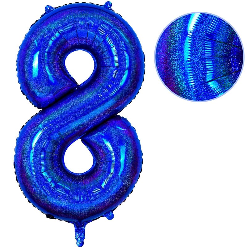 - Number 8 Balloon :This 40-inch number 8 foil balloon is a great choice for your 8 birthday celebrations. It's huge in size and features beautiful and unique laser visuals, and its unique laser blue design makes it an eye-catching highlight at parties, adding a lively vibe to your scene.