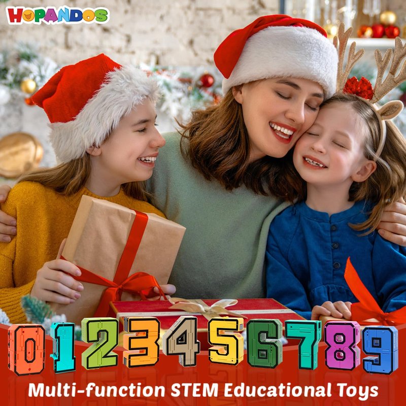 - Digital Enlightenment: HOPANDOS robot toys are not only toys but also innovative mathematical enlightenment teaching aids. This number blocks toys for kids allow preschoolers to learn number recognition while playing. The 10 digital building blocks can be transformed into small robots or mini cars. Through rich interactive play, children can learn while playing, gradually recognize numbers 0-9, and enhance their logical thinking and interest in mathematics.