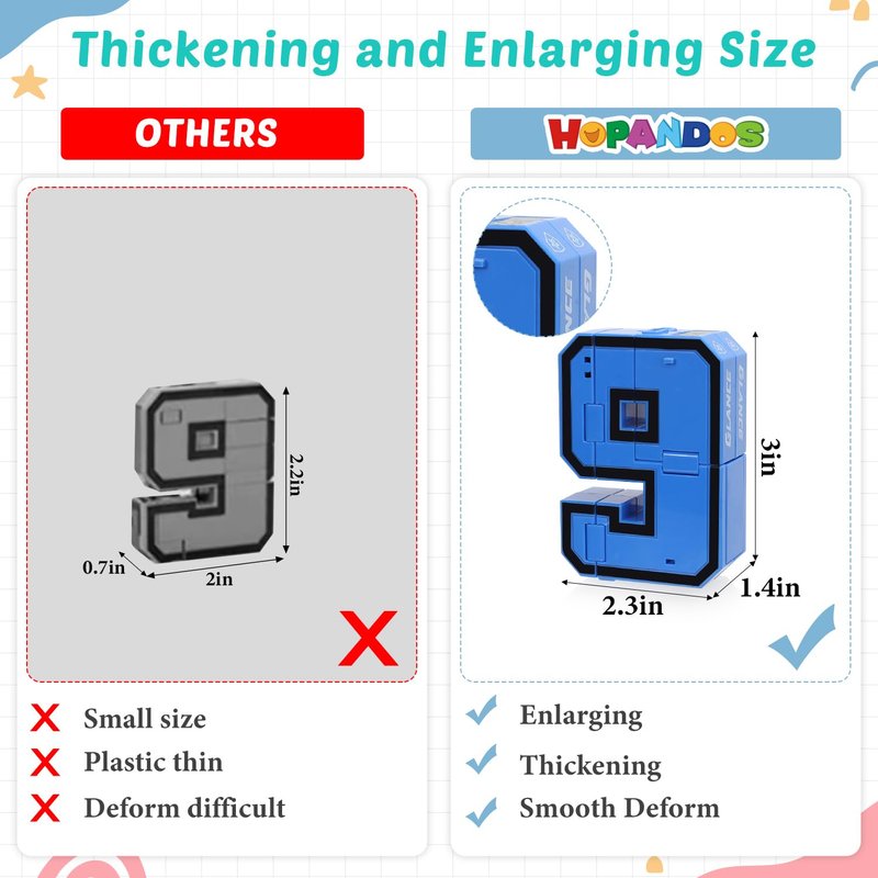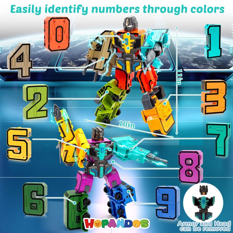 - Diverse Ways To Play: HOPANDOS unique 5-in-1 number blocks toy gives children an unprecedented building experience! It contains 10 independently deformable digital building blocks, which can not only be used as robots alone but also combined into 2 enlarged super robots. The whole set has 64 different combinations, and each assembly can bring a new experience, allowing children to discover new fun and unleash unlimited creativity constantly.