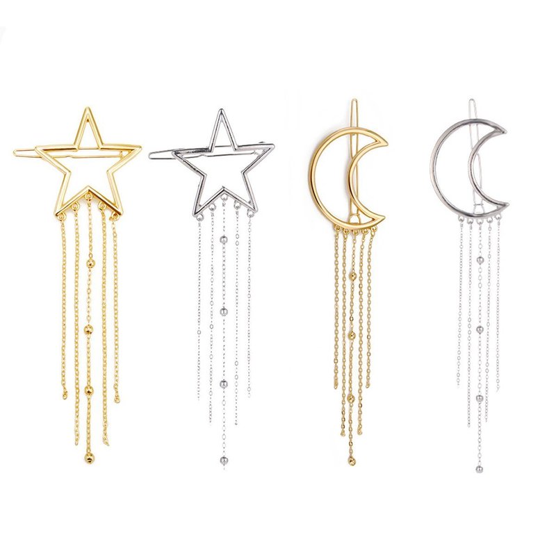 Numblartd 4 Pcs Fashion Metal Alloy Geometric Stars Moon Tassel Hair Clip Pins - Women Hollow Side Clip Hairpin Barrettes Bobby Pins Headdress Hair Accessories