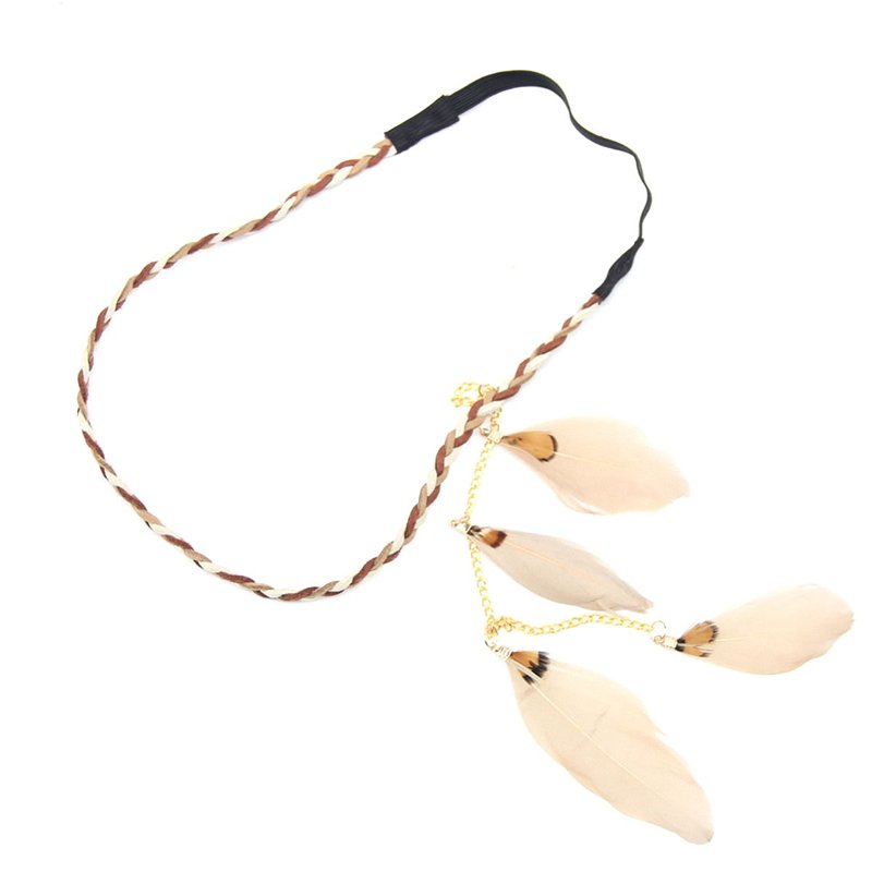Numblartd Stylish Boho Hippie Feather Hair Band Headband - Indian Vintage Elastic Head Wrap Hair Accessories Headdress for Lady Women (Beige)