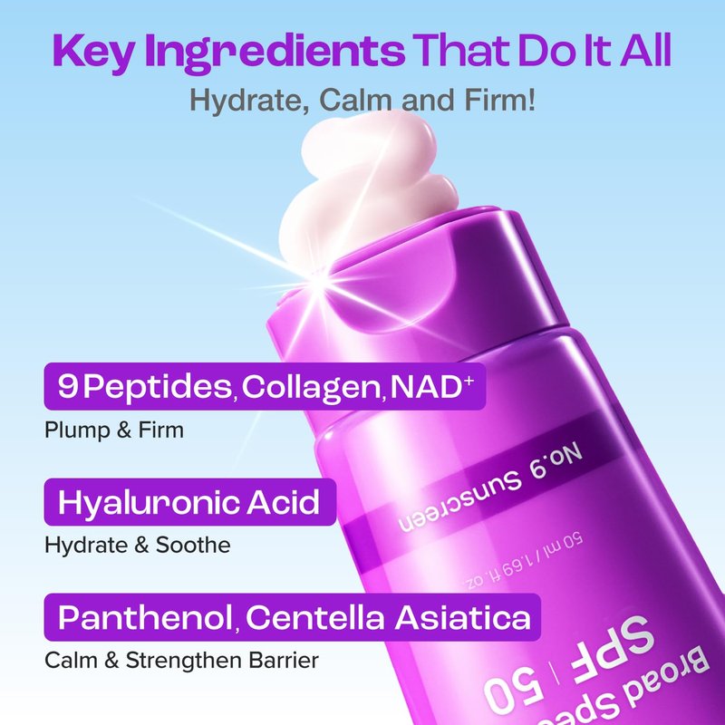 numbuzin No.9 Sunscreen | Super Defense Glow Sunscreen | Broad Spectrum SPF 50 | For All Skin Types & Skin Tones | Glowing, Dewy Finish, Water-Resistant | No White Cast, Korean Skincare | 1.69 fl. oz.