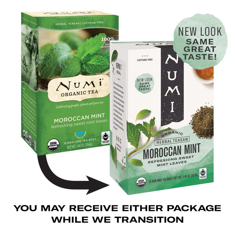 Numi Organic Tea Moroccan Mint, 18 Count Box of Tea Bags (Pack of 6) Herbal Teasan