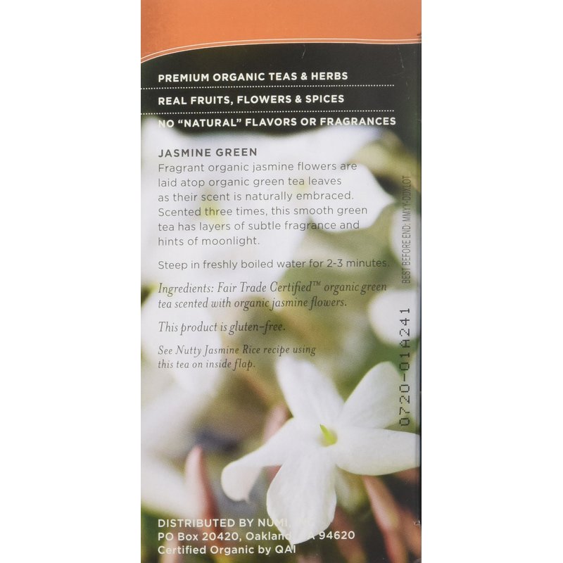 Numi Tea Green Tea, Organic Jasmine, 18 Bags