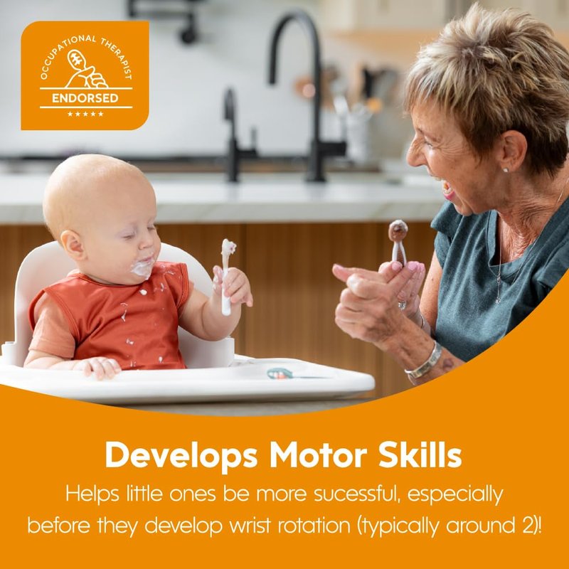 - Baby Led Weaning Spoon: The rigid build of GOOtensils makes them easier for manueverability. Other floppy and overly flexible baby spoons can cause difficulty for a child with limited skills.