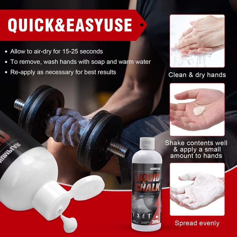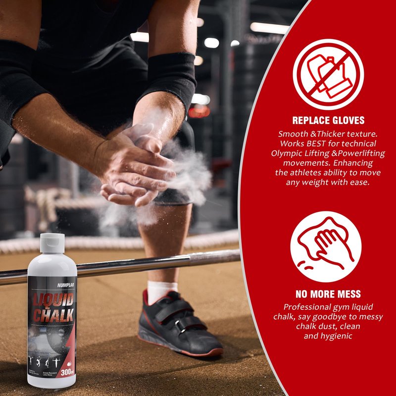 Numplar Liquid Chalk, Mess Free Gym Chalk for Weightlifting, Gymnastics, Rock Climbing. Professional Hand Grip for Lifting Chalk, Sweat-Resistant and Long Lasting for Stronger Grip - 300ml