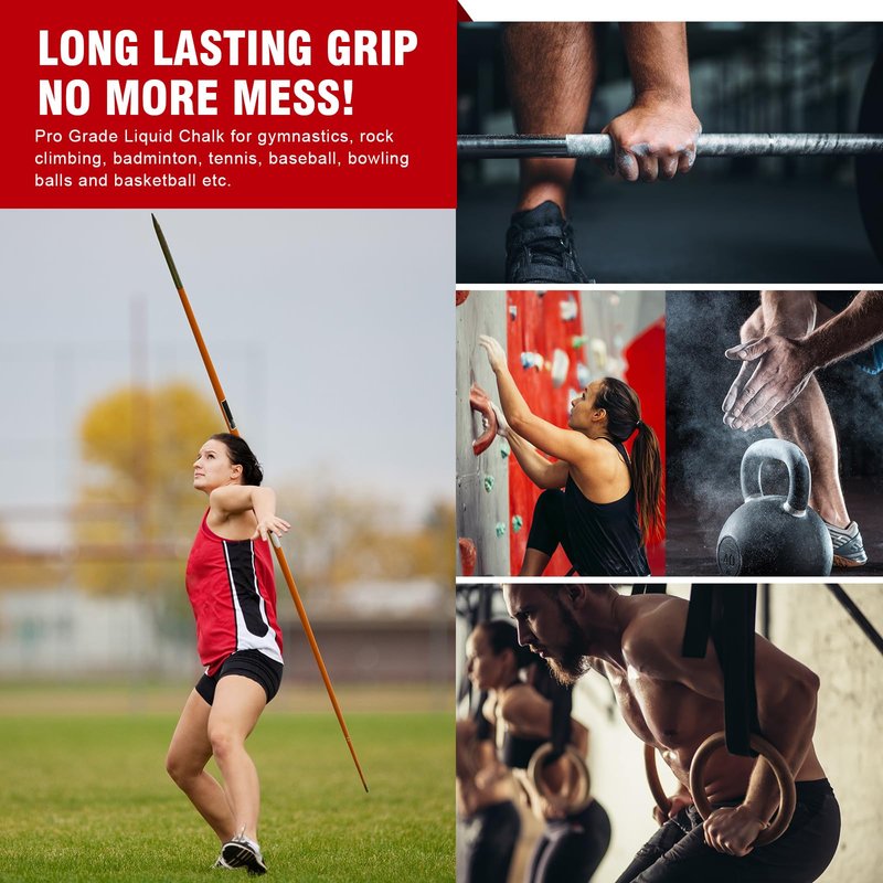 - Pro Grade Liquid Chalk for gymnastics, rock climbing, badminton, tennis, baseball, bowling balls and basketball etc.