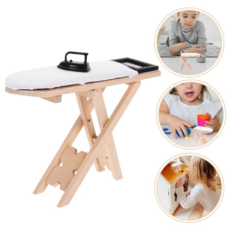 NUOBESTY 1 Set Dollhouse Miniature Iron Ironing Table Playset Mini Ironing Board Steam Iron Model Toy Laundry Room Furniture for DIY Fairy Garden Micro Landscape
