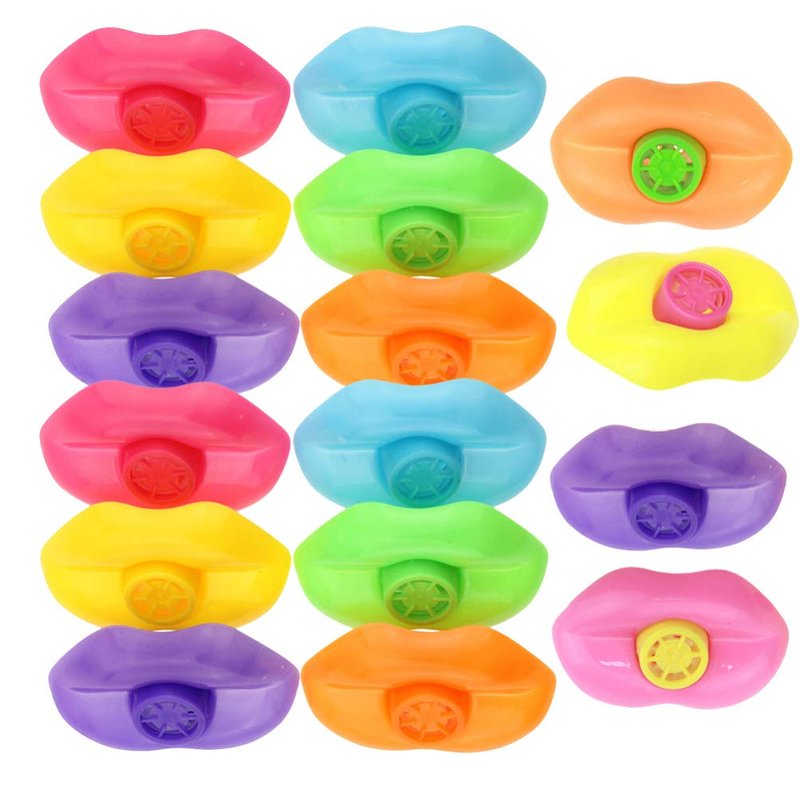 The package includes 20 plastic lip whistles in random colors, cute and fun, plenty of them, will bring you hours of fun.