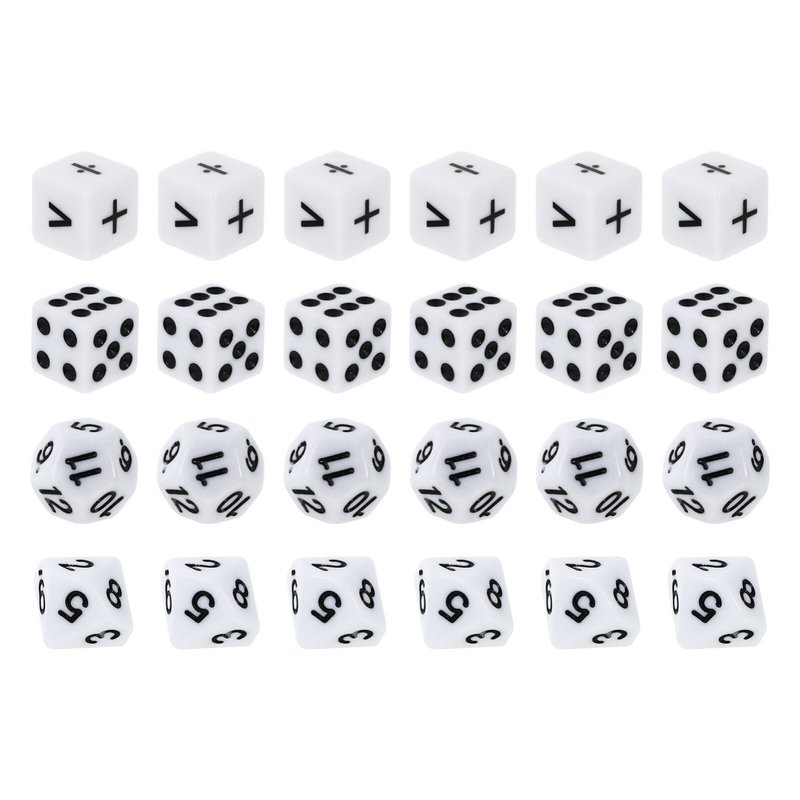 - Package Included: There is totall 24pcs teaching dice ( 6 pieces math operation dice+ 6 pieces 6- sided dot dices+ 6 pieces 10- sided number dices+ 6 pieces 12- sided dot dices )