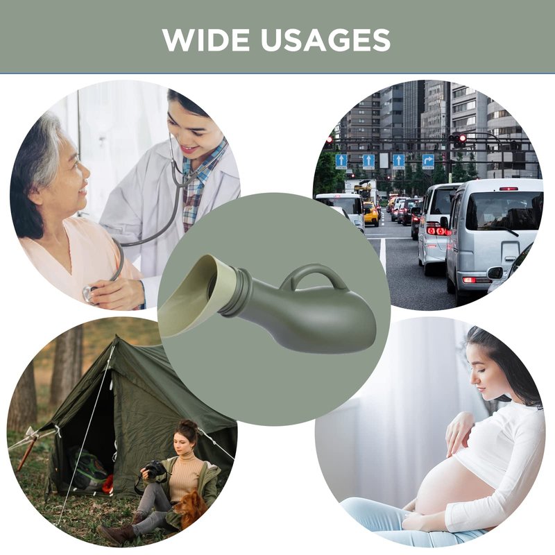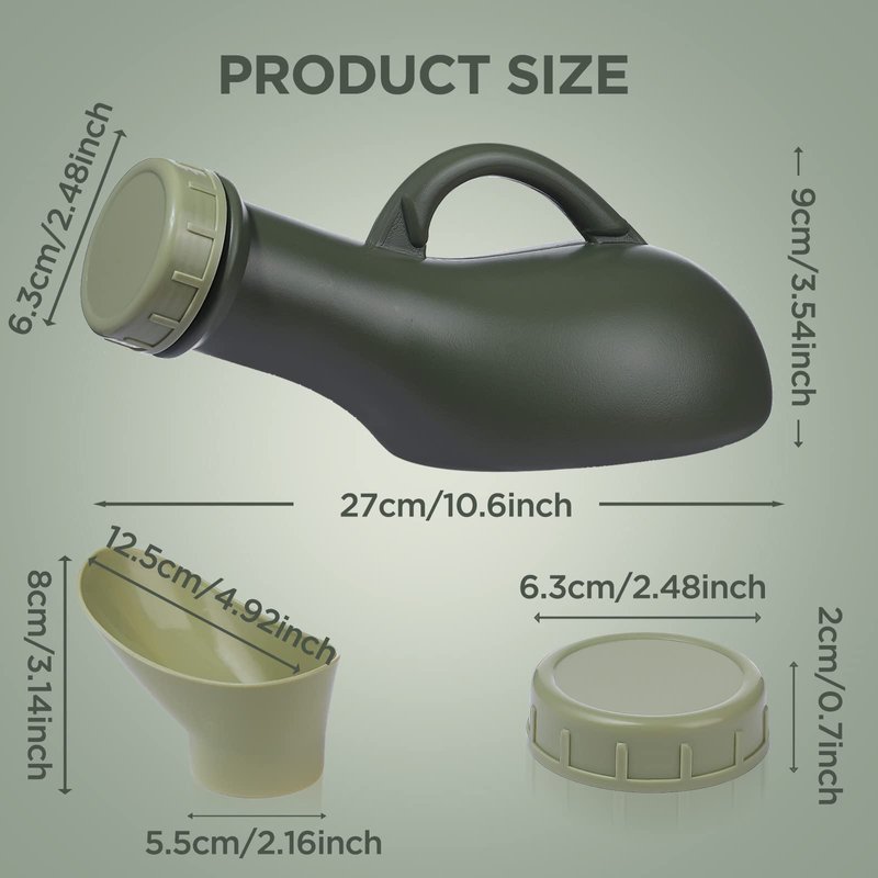 - Package includes: one pack travel pee urinal with screw cap and funnel. Capacity: 1000 ml.