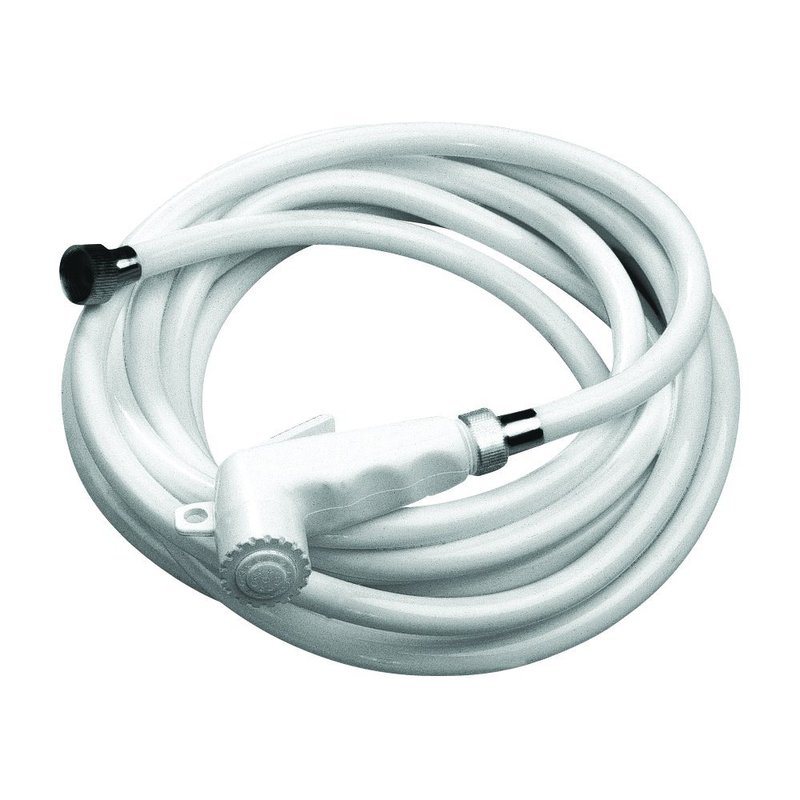 - The set Comes complete with 9 ft (118.11") of reinforced PVC hose that has 1/2 inch female chrome connection fittings and rubber washers