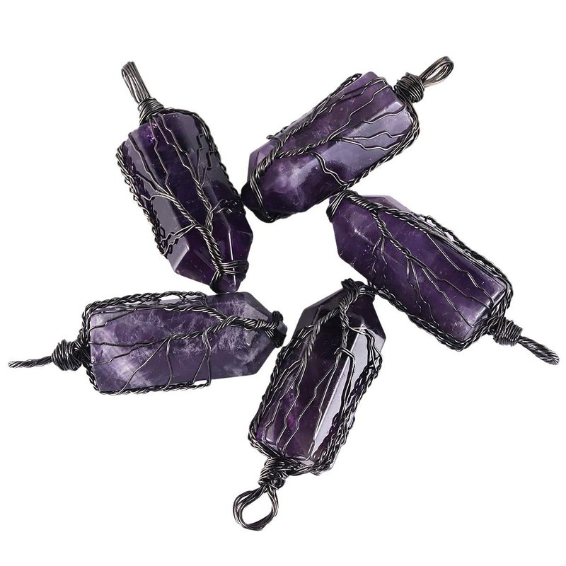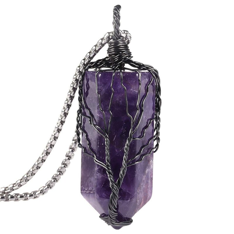- Amethyst Necklace for Men Women: Natural Amethyst, well polished, fine craftsmanship, hexagonal shape stone wire wrapped as tree of life with copper wire. Crystal point pendant perfect for condensing positive energy and clear negative energy in your body.