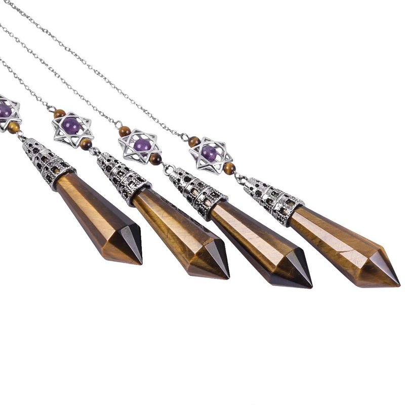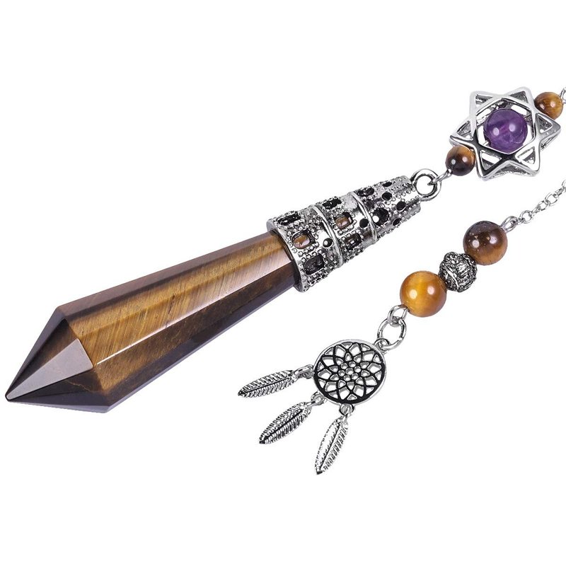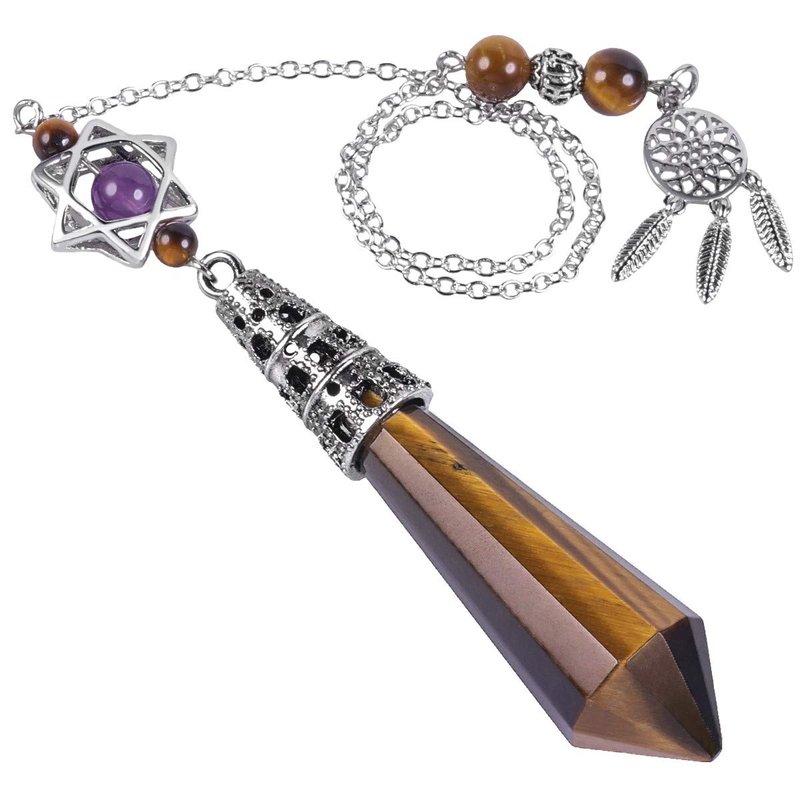 Nupuyai Healing Crystal Point Pendulum for Reiki Dowsing Divination Meditation with Dream Catcher Merkaba Star, Tiger's Eye Stone
