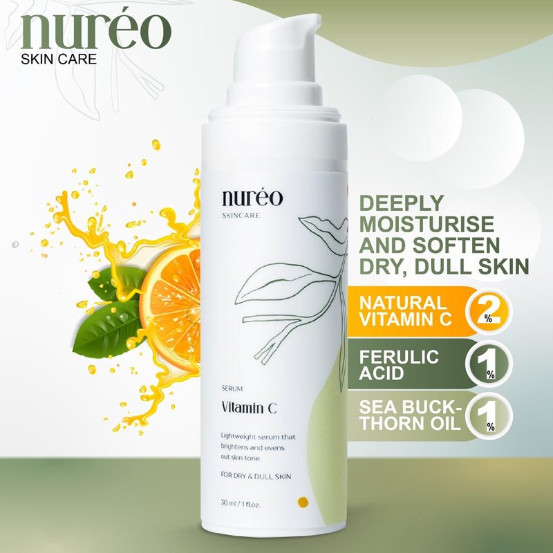 Nureo Vitamin C Serum - Brightening & Firming, 30ml - L-Ascorbic Acid, Ferulic Acid, Sea Buckthorn Oil, Hyaluronic Acid - Anti-Aging & Deep Hydration