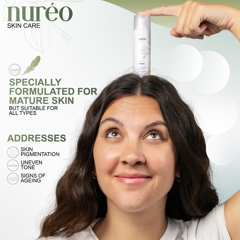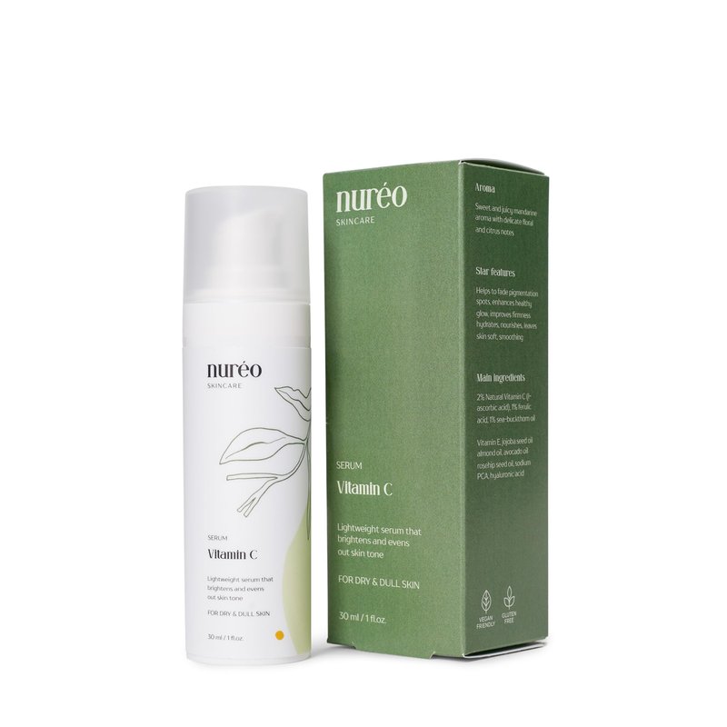 Discover the secret to youthful, radiant skin with Nureo's Vitamin C Serum. This advanced formula combines the power of stabilized natural Vitamin C, Ferulic Acid, and a blend of nourishing oils to deliver unparalleled brightening, firming, and hydrating benefits. Specially designed to combat pigmentation spots, uneven skin tone, and the visible signs of aging, this serum is your go-to solution for a flawless complexion.