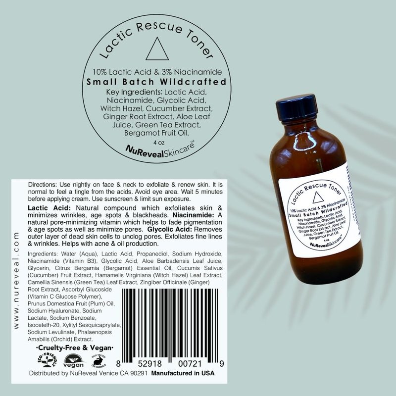 NuReveal Skincare Lactic Rescue Toner – Provides Gentle Skin Balance, Refreshing & Hydrating Facial Toner with Lactic Acid, Improves Uneven Skin Tone, Vegan & Cruelty Free - Ideal for Acne Prone Skin