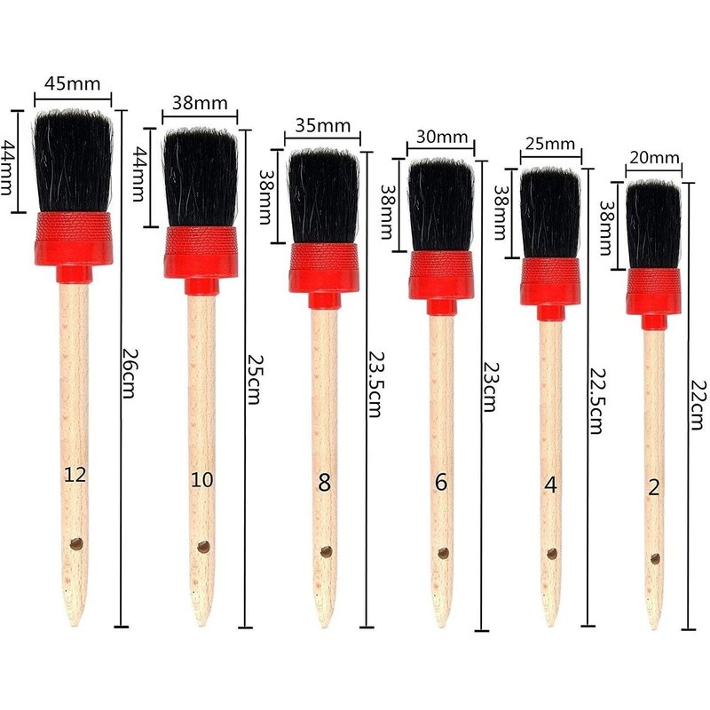 - ✅ VARIOUS SIZE - The car detailing brushes have 6 different brush sizes, you can choose any soft detailing brush to suit your needs, enough length for easily exploring and reaching into the lug nuts, narrow or tight space.