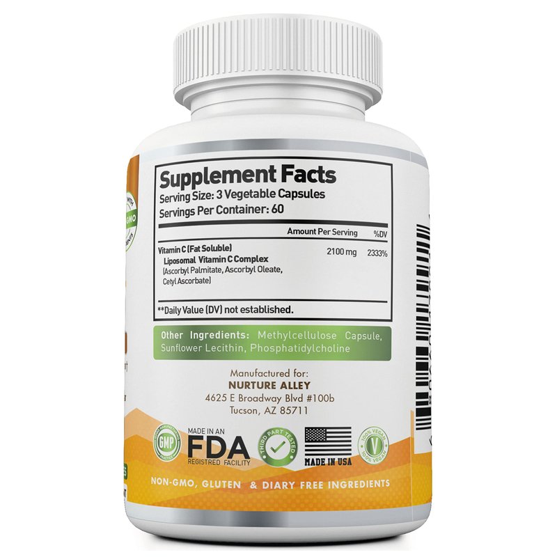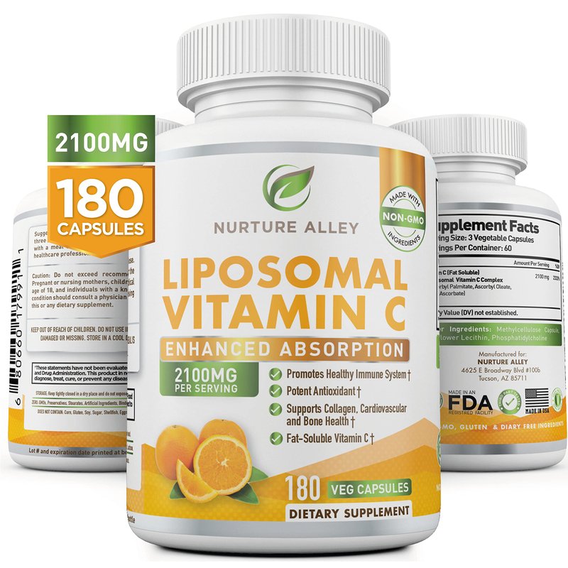 Nurture Alley Liposomal Vitamin C 2100mg- 180 Capsules High Absorption Ascorbic Acid - Supports Immune System and Collagen Booster - Powerful Antioxidant High Dose Fat Soluble Supplement