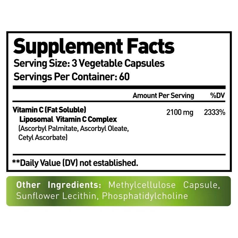 - Easy to Swallow, Miraculous Absorption – Fat Soluble Vitamin C: Our easy-to-swallow Vitamin C Liposomal capsules provide amazing results with the use of phospholipid sunflower lecithin which makes for liposomes in the body; With a blend of Ascorbyl Palmitate, Ascorbyl Oleate, Cetyl Ascorbate, Sunflower Lecithin, and Phosphatidycholine, this industry-leading formula allows for advanced absorption, enabling maximum delivery of your daily Vitamin C need – much better than regular vitamin C