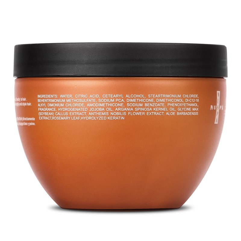- 100% ALL NATURAL.The Nuspa deep conditioning hair mask contains only natural ingredients: Jojoba Oil, Argan Kernel Oil, Collagen Protein, Hydrolyzed Keratin. Argan Oil Hair Mask is cruelty free and not tested on animals