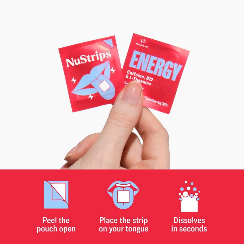NuStrips Energy | Natural, Instant Energy Strips with 50mg Caffeine, L-Theanine, Vitamin B12 | 30 Energy Strips = 30 Energy Drinks | 5X Faster Absorption