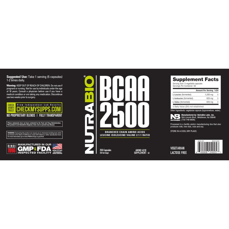 - NutraBio Superior Quality: Our BCAA 2500 upholds our commitment to uncompromising quality. It's 100% Pure Vegan Fermented BCAA in a researched 2:1:1 ratio, certified OU kosher and halal, non-GMO, gluten-free, BSE/TSE-free, and suitable for vegetarians. Our labels are fully transparent with no proprietary blends & all our products are manufactured in the USA. With 27 years of experience, NutraBio has been producing premium supplements adhering to the highest standards for quality potency & safety