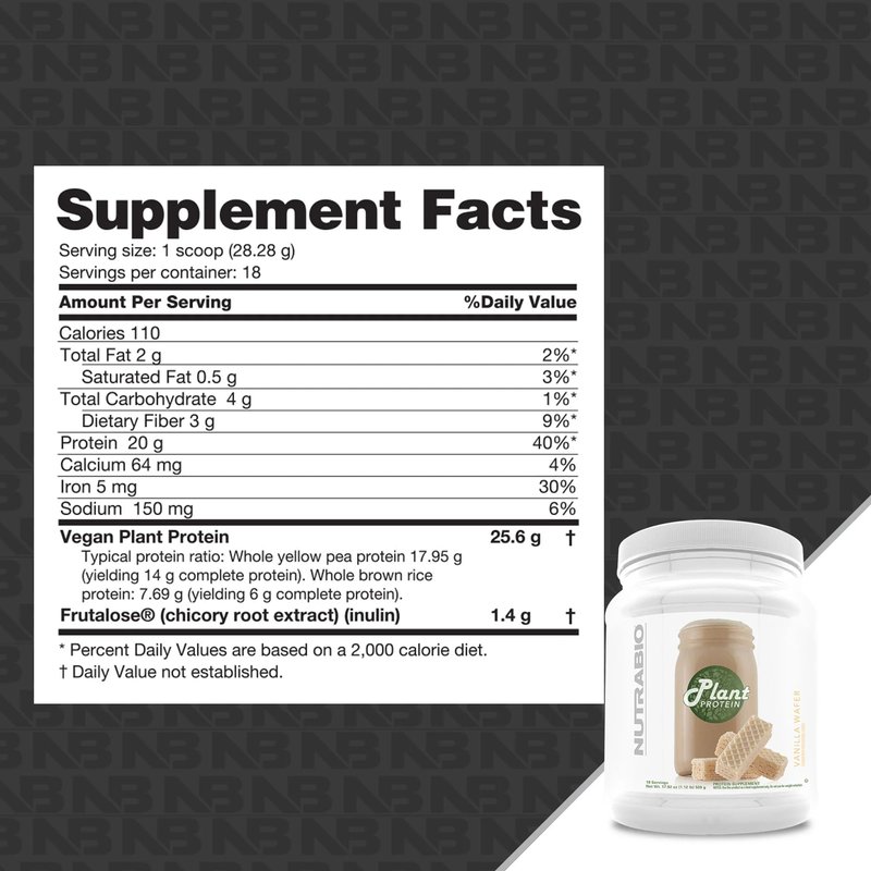 - Lean Muscle Growth – With 20g of protein per serving, superior bioavailability, just 110 calories per serving, and no added sugar, NutraBio Plant Protein is the ultimate vegan friendly protein source. The added 1.8g of Frutalose Inulin helps improve satiety and can contribute to weight loss.