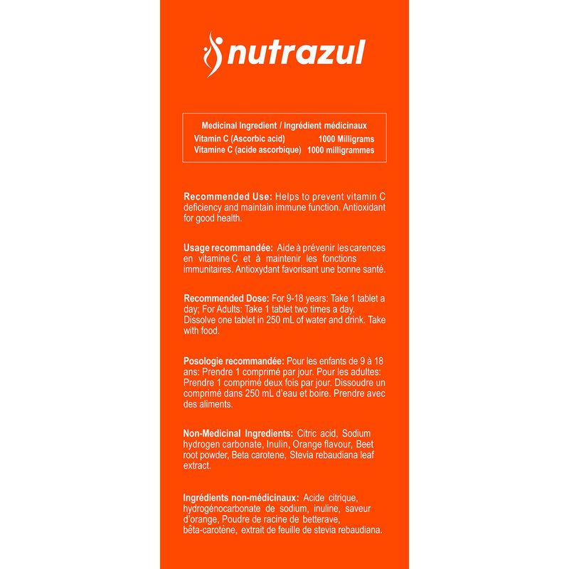 - HOW NUTRAZUL BENEFITS YOU: Nutrazul Effervescent Vitamin C Hydration Drink Tablets containing 1000 mg of Vitamin C to support immune function. Vitamin C provides powerful antioxidant protection for good health.